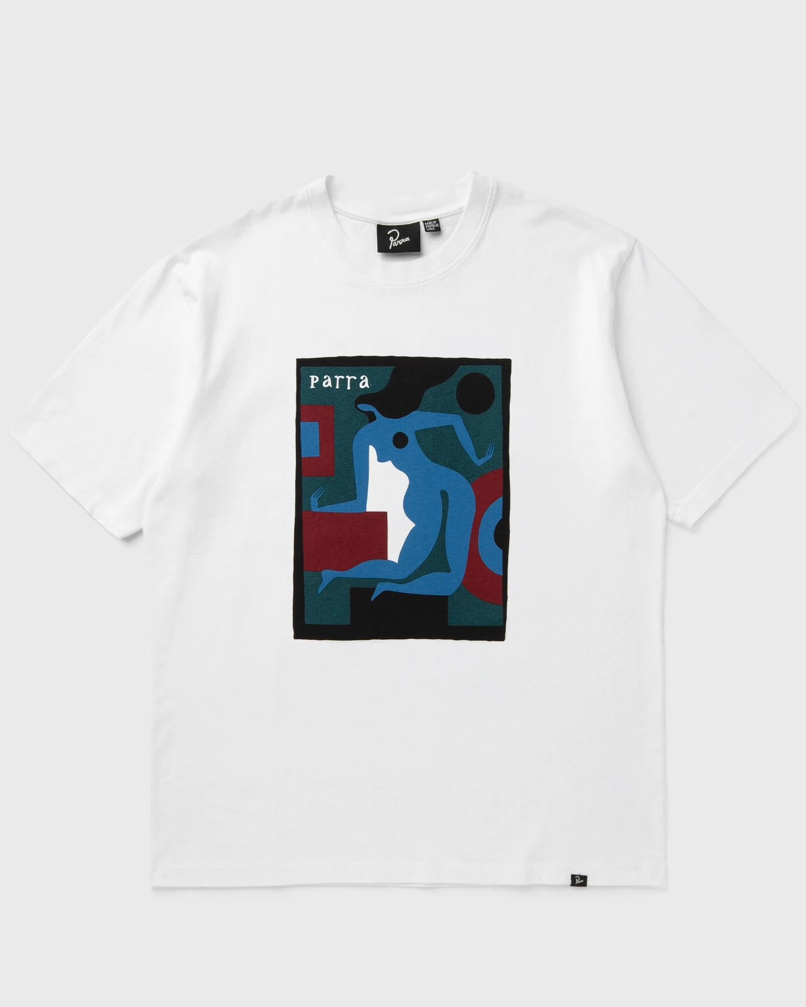 The casual cut and high-quality material make the By Parra Room Fever T-shirt the perfect everyday companion. An artwork print on the front creates a unique look. - Water-based screen print on the chest and back - 240 gram/m2 fabric weight - Ecologically pre-washed Article number: 53510 Gender: men Color: white Material: 100% Cotton