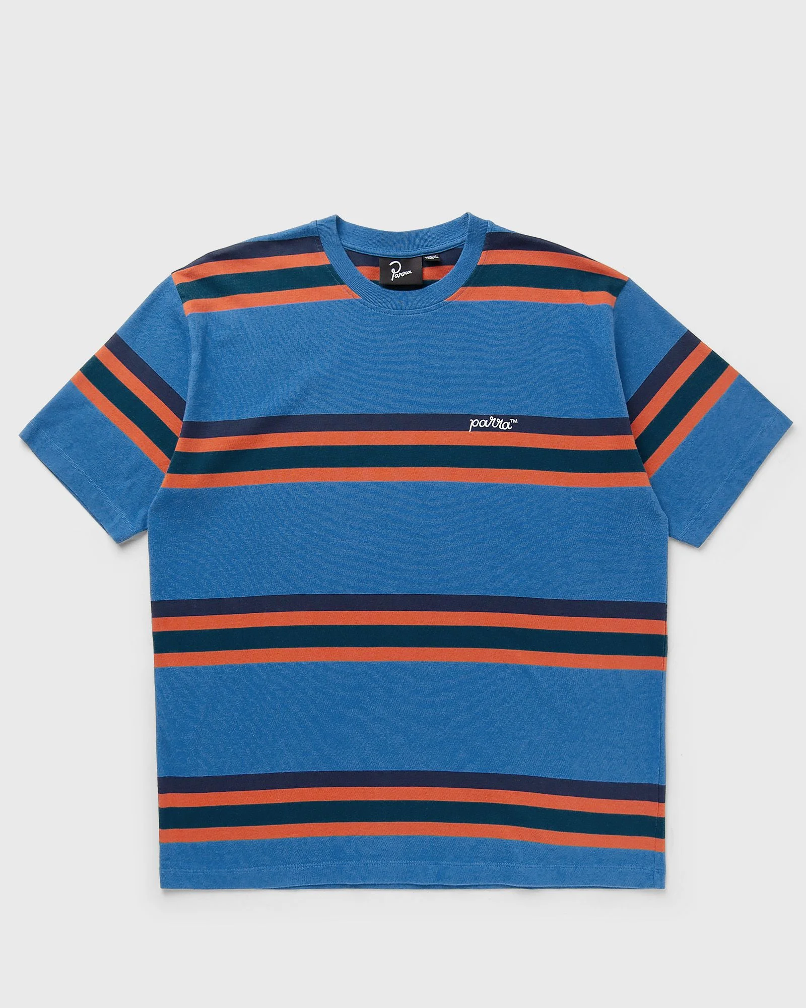 The Striped T-shirt from By Parra combines casual streetwear charm with artistic flair. Made from high-quality cotton, it offers maximum comfort thanks to its loose fit and soft material. The knitted, woven stripes in contrasting colors and the embroidered logo on the chest round off the design. - Woven stripe design - Embroidery on the chest - 240 gram/m2 fabric weight - Ecologically pre-washed Article number: 53210 Gender: men Color: blue Material: 100% Cotton