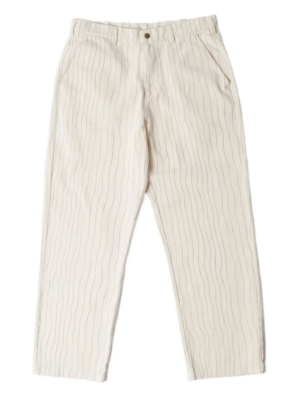 striped meandering trousers Highlights - Off white - Striped - Belt loops - Button closure - Back patch pocket - Logo patch Imported Composition Cotton 100% Washing instructions Read Manufacturer Guidelines