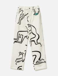 - By Parra - Yoga Walks Pants - Relaxed fit - Elastic waistband - Zip fly with snap button closure - "Yoga walks” artwork printed all over - Parra embroidery patch on the front - Two side pockets - Two rear welt pockets - Graphic prints on each product may differ - Color: White - Material: 100% Cotton - See more Pants and Clothing - Vendor Code: 53450.0
