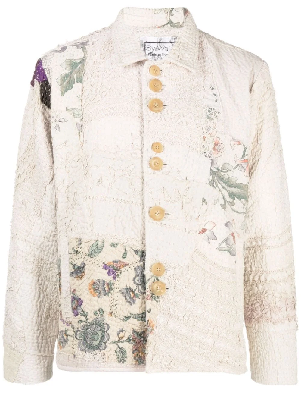 embroidered-patchwork cotton shirt jacket Highlights - Cream white/multicolour - Cotton - Floral print - All-over motif embroidery - Patchwork design - Contrast stitching - Spread collar - Front button fastening - Long sleeves - Straight hem Made in United Kingdom Composition Sleeve: Acetate 100% Body: Cotton 100% SIZE & FIT Model measurements Height 6 ft 2 in(1.87 m) Bust/Chest 36.22 in(92 cm) Hips 37.79 in(96 cm) Waist 28.34 in(72 cm) FittingInformation Designed for a boxy fit, intended for a loose fit throughout Made from a midweight non-stretch fabric This piece fits true to size – take your usual size
