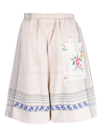 floral-embroidered linen drop-crotch shorts
