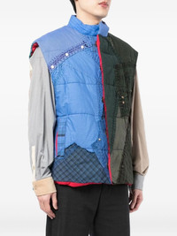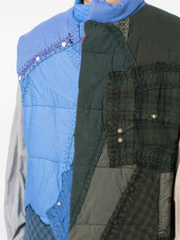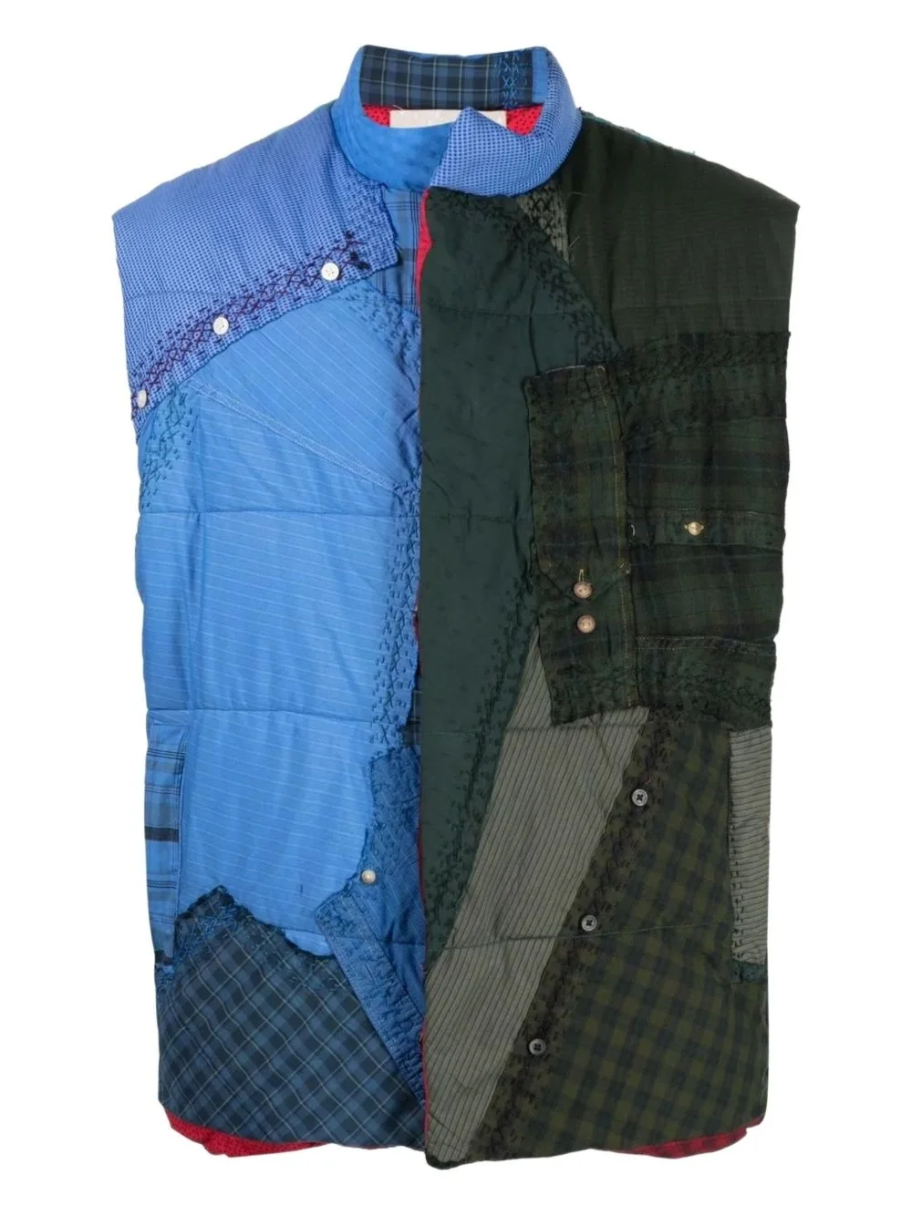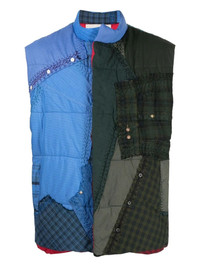 Teddy patchwork padded gilet Highlights - Blue and green - Mixed fabric construction - Decorative embroidery - Snap button fastening - Plaid pattern detailing - High neck Made in United Kingdom Composition Cotton 100%