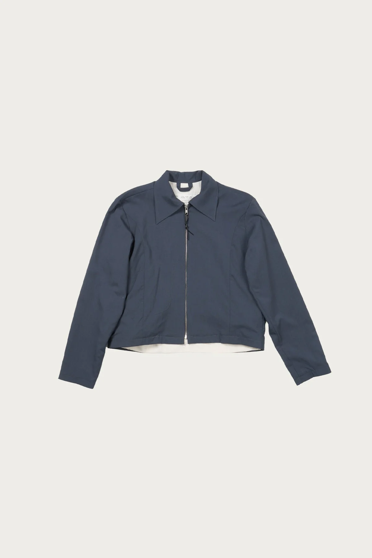 This fitted zip jacket is a quiet exercise in restraint, where cut and fabric do most of the talking. Shaped close through the body with subtle contouring at the seams, it feels tailored without ever tipping into formal. The petrol tone reads deep and muted, shifting gently with light and wear, while the lightweight wool fabric gives the jacket an easy drape and a soft hand. Finished simply with a clean zip front and minimal detailing, it works best as a refined everyday layer. Wear it over a tee or light knit and let the proportions do the rest.