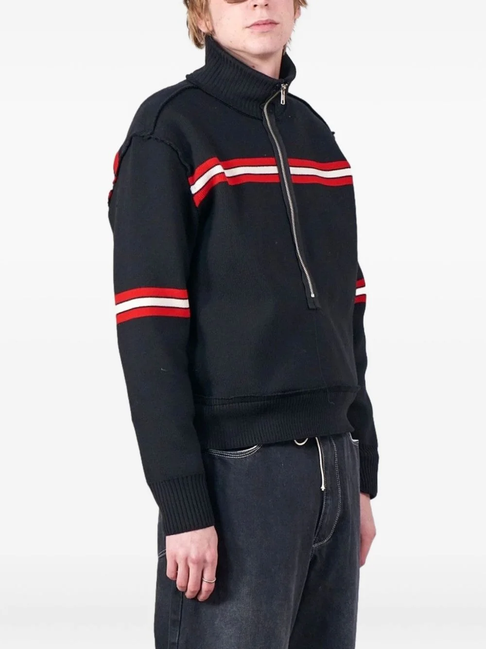 striped zip seaman's sweater Highlights - Black - Striped - Zip fastening - High neck - Ribbed hem - Ribbed cuffs Imported Composition Fabric 100% Washing instructions Read Manufacturer Guidelines