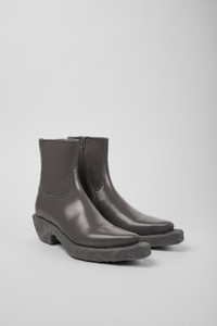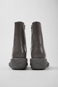 Gray leather boots with rubber outsoles (20% natural rubber, 5% TENCEL™). Features Upper Calfskin (Leather Working Group Certified) Color Gray Outsole/Features Rubber / Natural rubber / Tencel / ABS Side zip Insole EVA Lining 74% calfskin 17% recycled polyester 9% nubuck