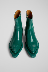Green leather boots with rubber outsoles (20% natural). Features Upper Calfskin (Leather Working Group Certified) Color Green Outsole/Features Rubber / Natural rubber / Tencel / ABS Side zip Insole EVA Upper 74% calfskin 17% recycled polyester 9% nubuck