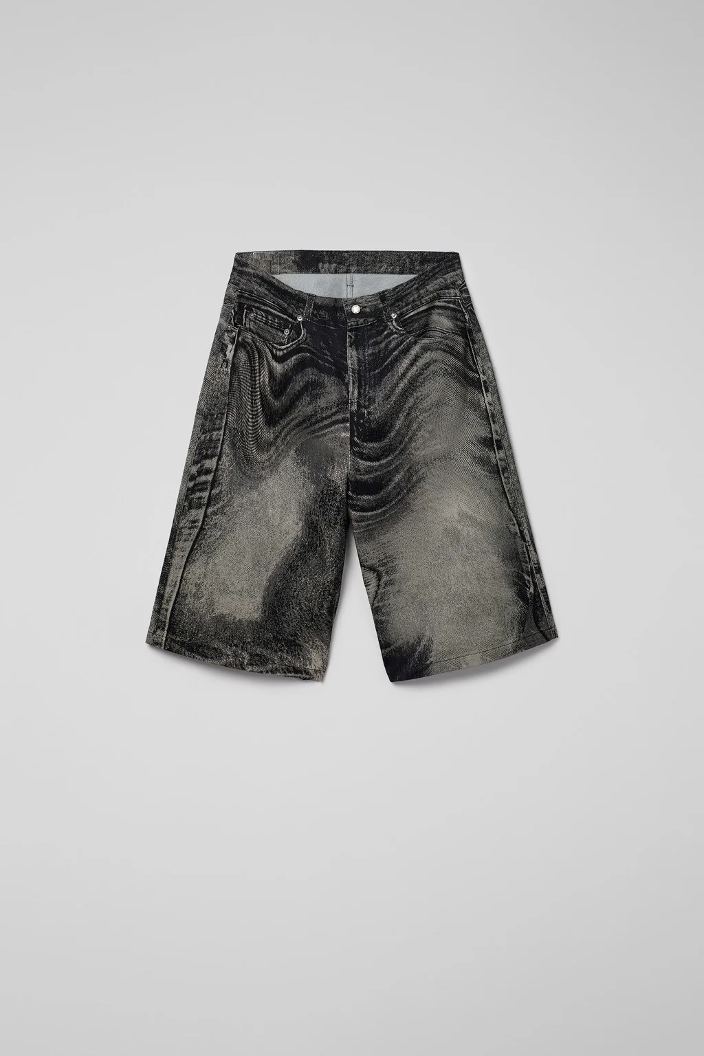 Black-grey shorts in Candiani Italian denim, made from a superior quality, durable, soft feeling cotton blend that does not require the use of harmful chemicals. Features Material 76% Organic Cotton, 24% Recycled Cotton Color Black-Gray Features - Belt loops Size and Fit Relaxed unisex fit. For a more low-rise look, size up. Male model is 189cm and wearing size 30 Female model is 179cm and wearing size 28 Female Model Measurment Bust: 80 cm Waist: 60 cm Hips: 88 cm Male Model Measurment Bust: 88 cm Waist: 69 cm Hips: 90 cm