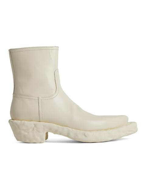DESCRIPTION - Boots - Thick outer sole - Pointed toe - Zipper on the side DETAILS AND CARE MATERIAL: Upper : 85% Leather / 15% Textile : 84% Polyethylene terephtalate/ 16% Latex / Lining : 63% Leather 19% Recycled polyesterr 10% Textile : 84% Polyethylene terephtalate/ 16% Latex 8% Suede / InSole : 100% Rubber / Sole : 51% Suede / 49% Leather HEEL HEIGHT: 5.6 cm / 2.2 " COLOR: white COUNTRY OF MANUFACTURE: Portugal PRODUCT CODE: CLL4G4EBWHTE2A1A00