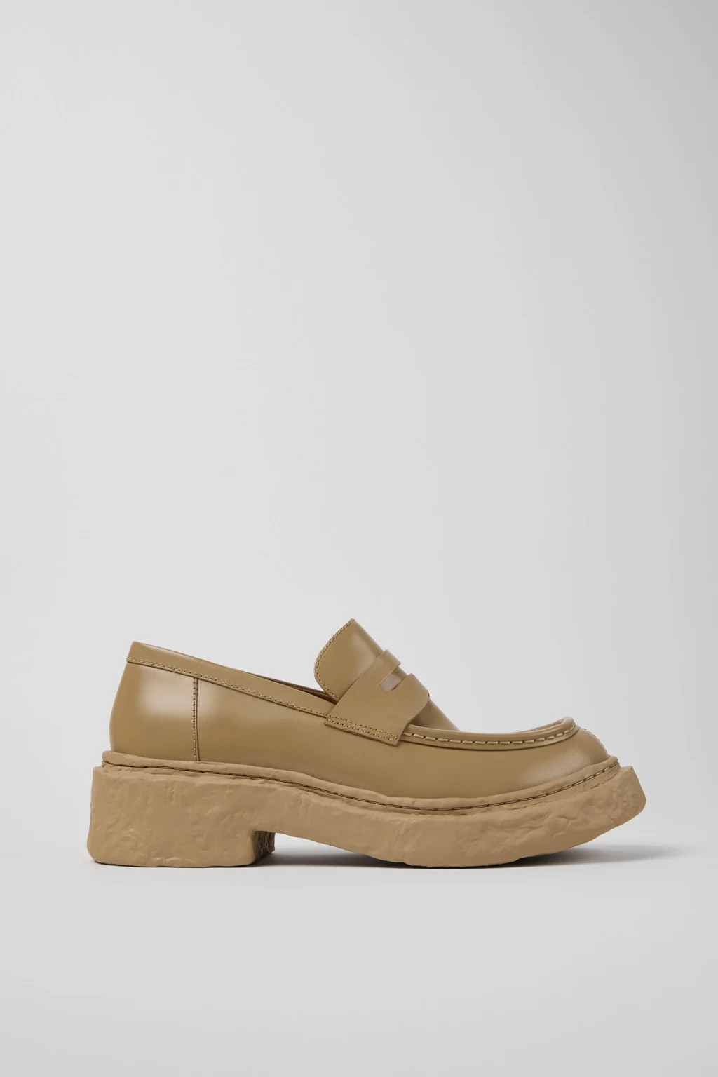 Beige leather loafers with OrthoLite® Recycled™ footbeds and PU outsoles. Features Upper 100% Leather (LWG gold certified) Color Beige Outsole/Features 100% PU Insole - OrthoLite® Recycled™ Footbed Lining 73% Leather, 27% Recycled Polyester