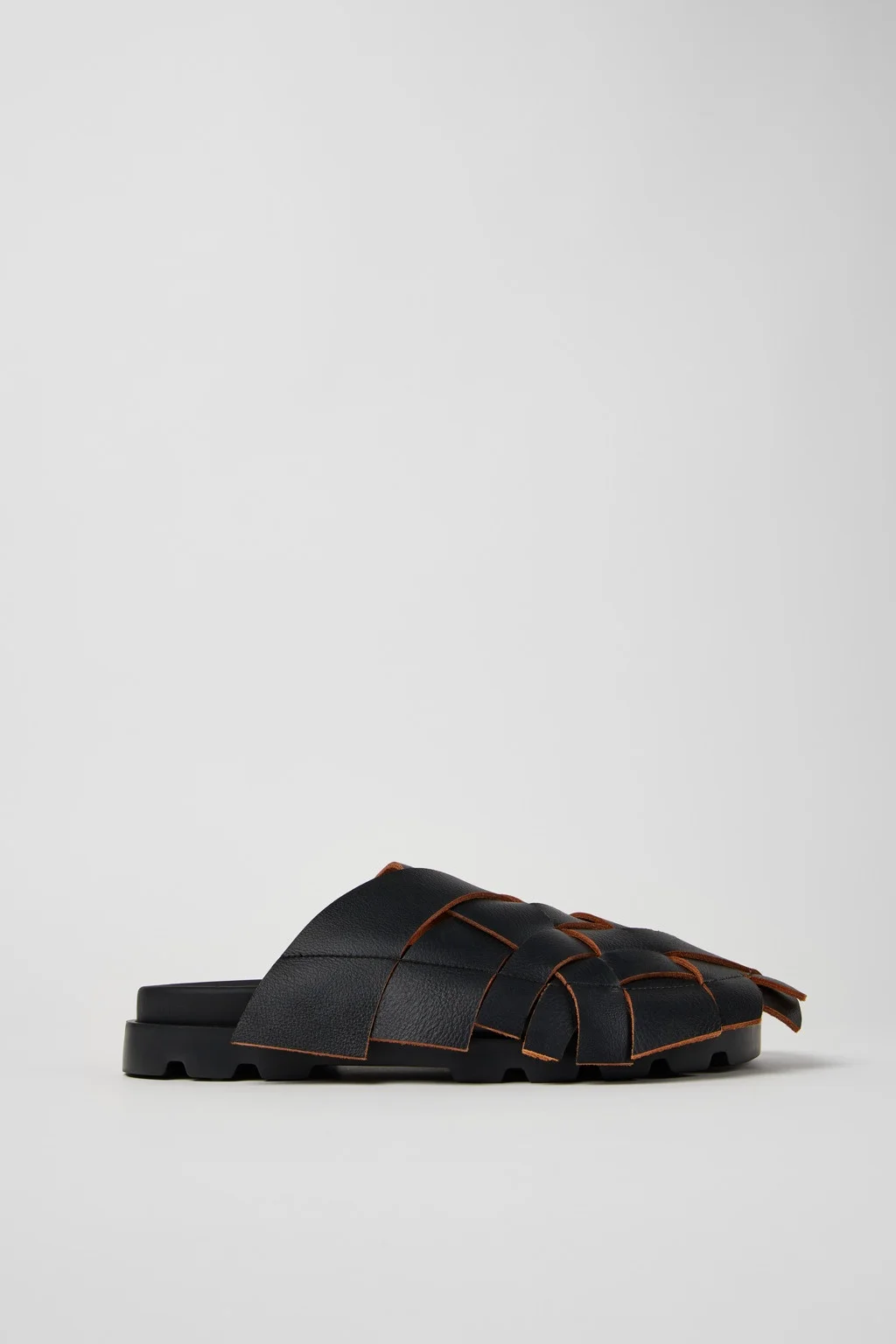 Black leather sandal with oversized, irregular woven leather upper and XL EXTRALIGHT® EVA Outsoles. Features Upper Leather Color Black Outsole/Features XL EXTRALIGHT® EVA Outsole Insole PU Non-Removable Footbed Lining Recycled Polyester