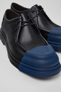 Black calfskin leather shoes for men with OrthoLite® Recycled™ footbeds and rubber outsoles and Toe Cap (23% recycled).<br/><br/>Made with minimal components and glue, Junction is easy to dissassemble promoting a more circular approach to shoe-making. Features Upper Calfskin Leather Color Black Outsole/Features Rubber Outsole & Toe Cap (40% Natural, 23% Recycled) Insole OrthoLite® Recycled™ Footbed Height 3.0 CM Lining 61% Textile (45% Recycled Polyester - 35% Recycled Cotton - 20% Viscose) 39% Recycled Polyester