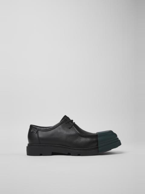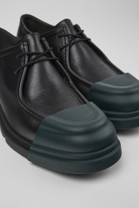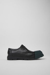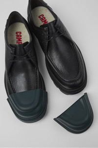 Black responsibly sourced leather men's shoes with removable toe caps, OrthoLite® Recycled™ removable footbeds, and rubber outsoles (40% natural, 23% recycled).<br/><br/>Made with minimal components and glue, Junction is easy to disassemble promoting a more circular approach to shoe-making. Features Upper Responsibly Sourced Leather Color Black Outsole/Features Rubber (40% natural, 23% recycled) Laces Insole OrthoLite® Recycled™ Footbed for cushioning Height 3,0 cm Lining 61% Textile (45% Recyled Polyester - 35% Recycled Cotton - 20% Viscose) 26% Recyled Polyester 13% Leather