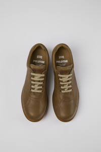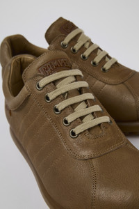 Brown leather men's Oxford sneakers with lace closures, odor-controlling PU footbeds, and 100% rubber outsoles. Pelotas Ariel is our most iconic Camper style. With an unmistakable, sport-inspired outsole comprised of 87 spheres, each pair is handcrafted from European leathers that is 360º stitched to the original rubber outsole. Made in Europe We are dedicated to creating durable, long-lasting products with the lowest possible environmental impact. Developed and crafted in Europe, each pair combines the highest quality materials with generations of shoemaking heritage. Features Upper 100% Calfskin Color Brown Outsole/Features 100% Rubber Insole - PU Footbed Lining 68% Calfskin, 32% Recycled Polyester