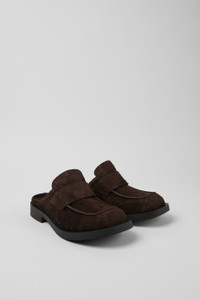 Brown Nubuck Slide Loafers