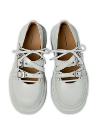 buckle-strap vamonos loafers Highlights - Grey - Smooth finish - Buckle-strap fastening - Front lace-up fastening - Chunky sole - Low heel Imported Composition Outer: Calf Leather 100% Lining: CALFSKIN 100% Sole: Polyester 100%