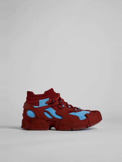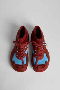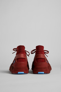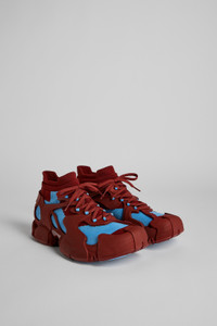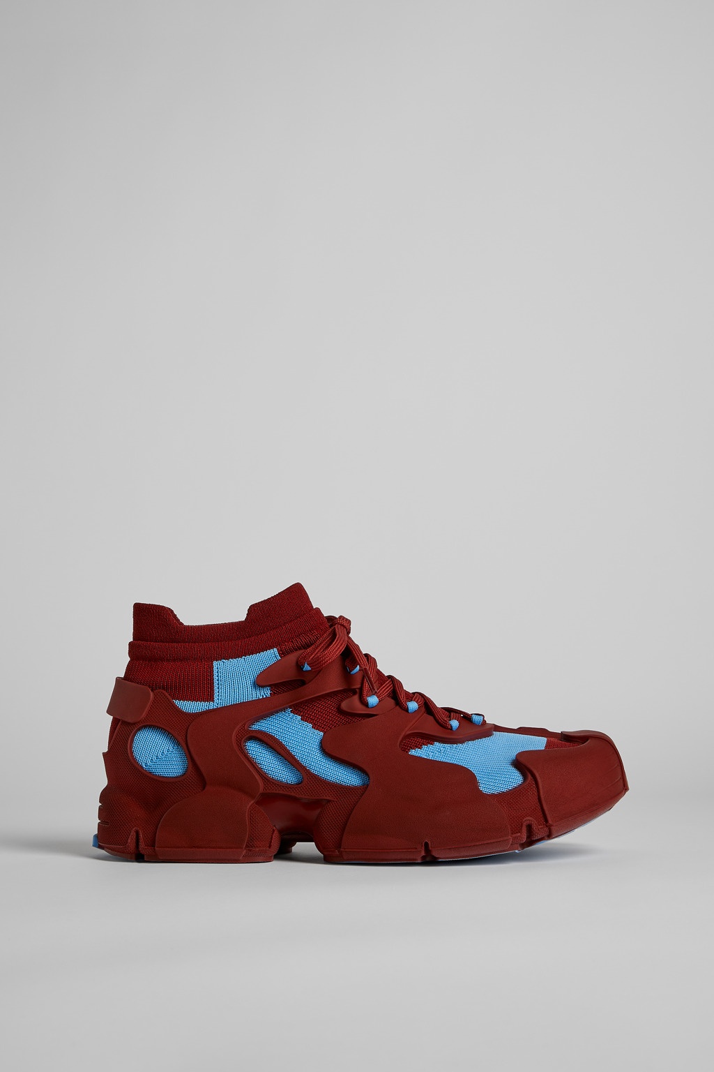 Burgundy caged sneakers with 3D-knitted water repellent sock interiors made from recycled PET, TPU exteriors, and 100% recycled PU outsoles. Fully recyclable. Features Upper Textile / Synthetic Color Multicolor Outsole/Features 90% PU - 10% TPU Lining 80% textile (75% recycled polyester 14% PU fiber 11% spandex) 20% recycled PET