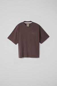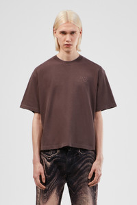 Dusty brown mineral-dyed 100% organic cotton T-shirt with cut-out neck detail at back. Features Material 100% Organic Cotton Color Dusty brown Features Cropped length Tonal logo embroidery at chest Size and Fit Unisex For a more cropped look, size down. Male model is 191 cm and wearing size M Female model is 178 cm and wearing size XS