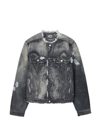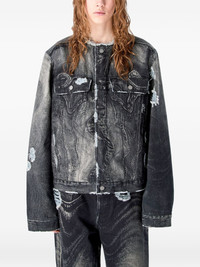 frayed denim jacket Highlights - Black and gray - Cotton - Chest pockets - Frayed trim - Button fastening Imported Composition Organic Cotton 100% Washing instructions Read Manufacturer Guidelines