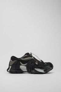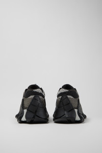 Gray-black sneakers with TENCEL™ Lyocell uppers featuring distorted print, recycled PET laces with drawstring closure, sugarcane EVA midsoles, OrthoLite® Recycled™ footbeds, and natural rubber outsoles. Features Upper TENCEL™ Lyocell Color Gray/Black Outsole/Features Natural rubber Midsole Sugarcane EVA Insole Recycled OrthoLite® Footbed Lining 76% recycled polyester 24% textile (51% TENCEL™ Lyocell-36% recycled polyester-13% PU Thread)