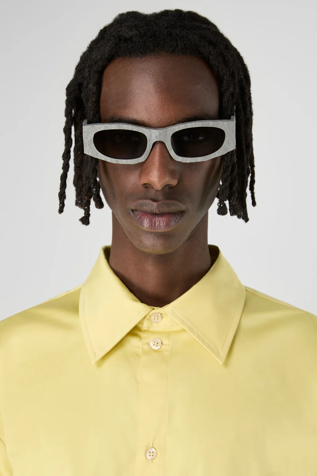 Gray HIRMU sunglasses feature frames handcrafted from bio-circular acetate, fitted with 'poly renew' lenses made from 50% certified recycled plastic, offering 100% UV protection. Features Material HIRMU sunglasses feature frames handcrafted from bio-circular acetate, fitted with 'poly renew' lenses made from 50% certified recycled plastic, offering 100% UV protection. Color Gray Features Rectangular frames with chunky temples handcrafted from textured acetate - Bio-circular acetate - Lens: Gray, CAT 3 - Poly renew lenses made with 50% recycled plastic - 7 barrel hinges and coated safety screws - Can be fitted with prescription lenses by an optometrist Can be fitted with prescription lenses by optometrist / Suitable for optical/ prescription conversion - Handmade in China - Every frame made = one tree planted Size and Fit One Size Unisex