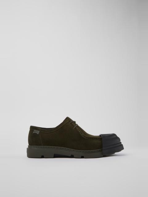 Green nubuck men's wallabee shoes with lace-up closures, recycled OrthoLite® footbeds, and rubber outsoles.<br/><br/>Made with minimal components and glue, Junction is easy to dissassemble promoting a more circular approach to shoe-making. Features Upper Calfskin / Rubber / Recycled Rubber Color Green Outsole/Features Rubber Outsole (40% Natural, 23% Recycled) Insole - OrthoLite® Recycled™ Footbed Lining 61% Textile (45% Recycled Polyester, 35% Recycled Cotton, 20% Viscose), 26% Recycled Polyester, 13% Leather