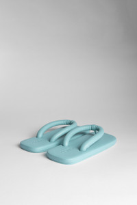 Turquoise blue leather flip-flop sandals with squared design and memory foam footbed. Comes with split-toe tabi socks made of embossed organic cotton in matching color. Features Upper Sheepskin Color Blue Outsole/Features Rubber Lining 100% Sheepskin