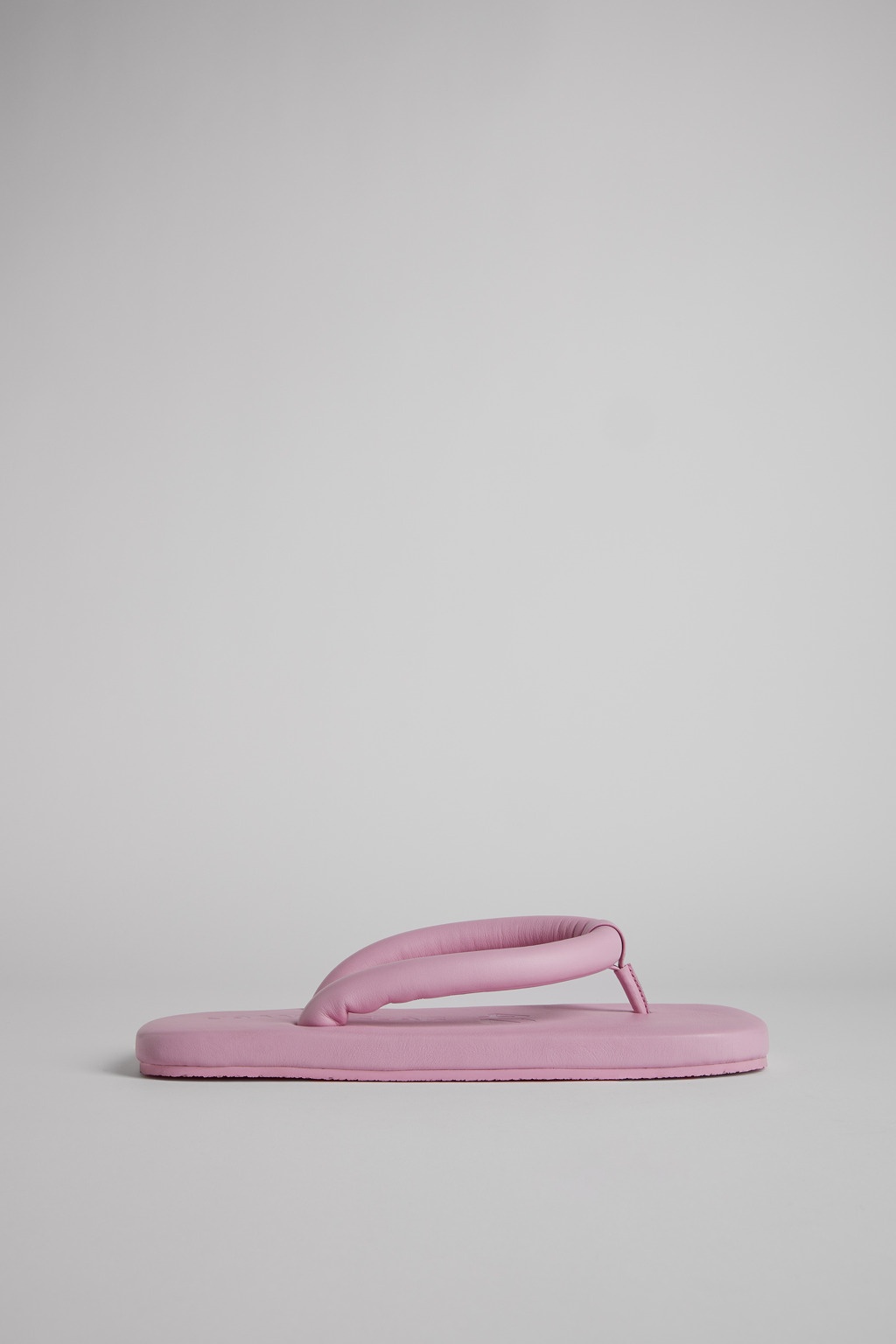 Pink leather flip-flop sandals with squared design and memory foam footbed. Comes with split-toe tabi socks made of embossed organic cotton in matching color. Features Upper Calfskin Color Pink Outsole/Features Rubber Lining 100% Calfskin Leather Working Group Certified