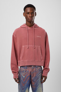 Red hoodie in 100% mineral-dyed organic cotton, using 80% less water on average than standard cotton. Features Material 100% Organic Cotton Color Red Features - Drawstring hood - Pouch pocket - Cut-out detail Size and Fit Unisex For a more cropped look, size down. Male model is 189cm and wearing size M Female model is 179cm and wearing size M Female Model Measurment Bust: 80 cm Waist: 60 cm Hips: 88 cm Male Model Measurment Bust: 88 cm Waist: 69 cm Hips: 90 cm