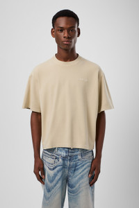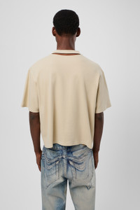 Beige T-shirt in 100% mineral-dyed organic cotton. Features Material 100% Organic Cotton Color Beige Features - Crewneck - Short sleeves - Cut-out detail Size and Fit Unisex For a more cropped look, size down. Male model is 189cm and wearing size M Female model is 179cm and wearing size M Female Model Measurment Bust: 80 cm Waist: 60 cm Hips: 88 cm Male Model Measurment Bust: 88 cm Waist: 69 cm Hips: 90 cm