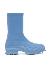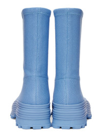 Ankle-high vulcanized knit TENCEL™ Lyocell-blend boots in black. · Round rubber cap toe · OrthoLite® Recycled™ footbed · Textured rubber midsole · Treaded rubber outsole Supplier color: Pastel blue