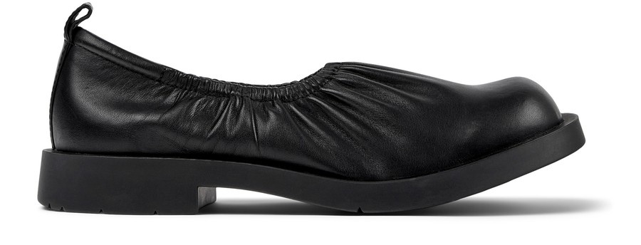 DESCRIPTION - round toe - leather loop at the back for easy slipping on and off - closed DETAILS AND CARE MATERIAL: Outer : 100% Smooth Leather / internal : 100% Leather / Sole : 100% Cork HEEL HEIGHT: 0.1 cm / 0 " COLOR: black COUNTRY OF MANUFACTURE: Vietnam PRODUCT CODE: CLL98262BCK4HAAA00
