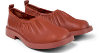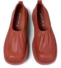 DESCRIPTION - round toe - leather loop at the back for easy slipping on and off - closed DETAILS AND CARE MATERIAL: Outer : 100% Smooth Leather / internal : 100% Leather / Sole : 100% Cork HEEL HEIGHT: 0.1 cm / 0 " COLOR: medium_red COUNTRY OF MANUFACTURE: Vietnam PRODUCT CODE: CLL98262RED742AA00