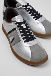 Silver-black leather and nubuck men's sneakers with OrthoLite® Recycled™ footbeds and rubber outsoles.<br/><br/>With a name inspired by a small village in Mallorca, Pelotas Soller is an honest and unpretentious summer sneaker made with minimum ingredients. Features Upper Nubuck / Leather Color Silver Outsole/Features 100% Rubber Insole OrthoLite® Recycled™ Non-Removable Footbed Lining 55% Recycled Polyester, 45% Leather