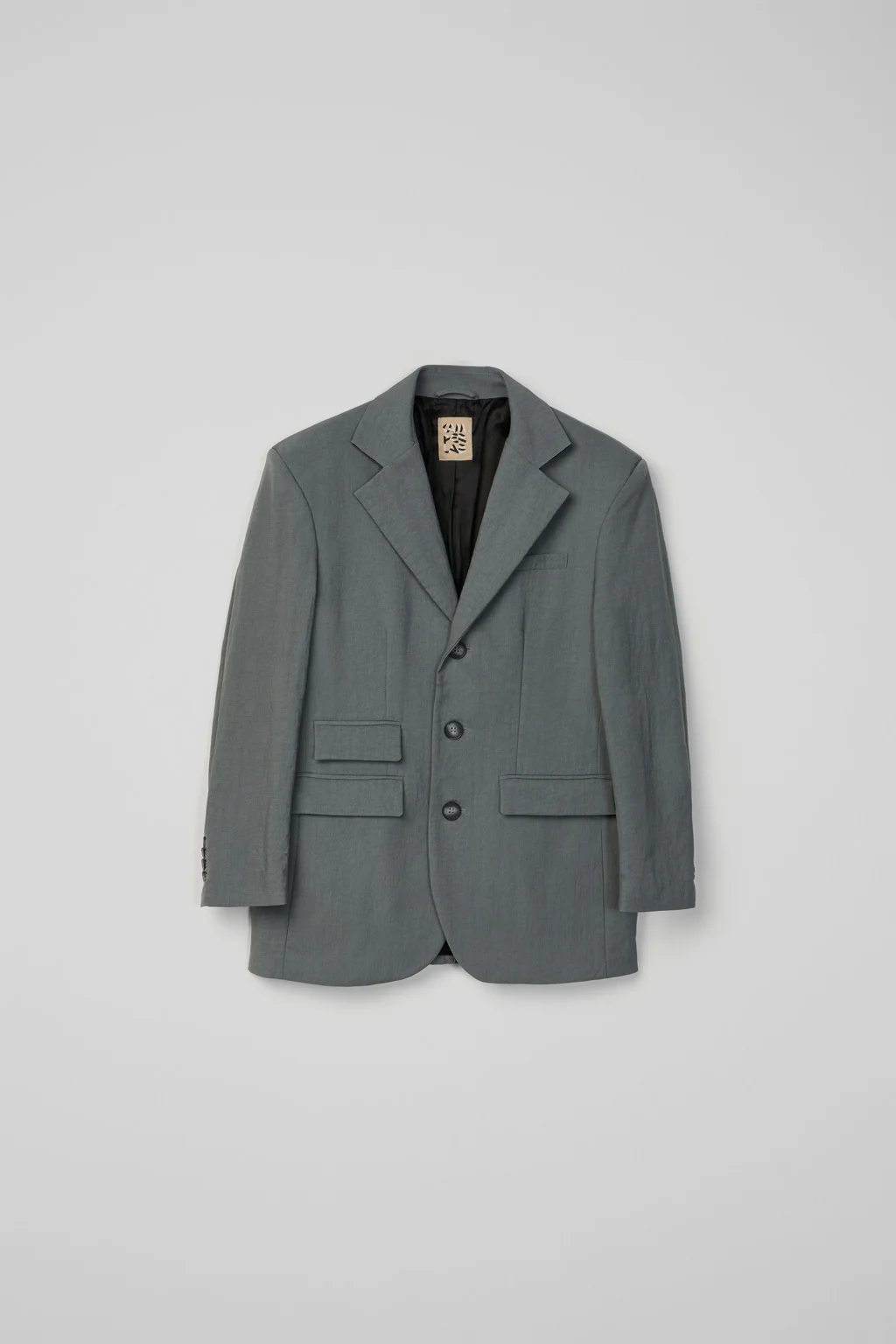 Tailored Blazer crafted from ECONYL® nylon, a 100% regenerated fibre made by recovering nylon waste materials.<br/><br/>The technical fabric's structured surface offers a sleek aesthetic, while keeping the fit relaxed and modern. Features Material Outer: 100% ECONYL® Recycled Polyamide Lining: 100% Polyester Color Gray Features Single-breasted Notch lapel Four button cuffs Piped pocket at chest Flap pockets at front Back vent Shoulder pads Size and Fit Unisex Regular fit Male model is 185 cm and wearing size M Female model is 175 cm and wearing size S