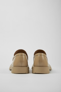 Beige leather loafers with rubber outsoles. Features Upper Calfskin (Leather Working Group Certified) Color Beige Outsole/Features Rubber / Natural rubber / Recycled rubber Insole OrthoLite® for cushioning Lining 73% calfskin 27% textile (45% recycled polyester - 35% recycled cotton - 20% viscose)