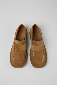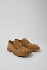 Brown premium suede calfskin loafers with OrthoLite® Recycled™ footbeds and rubber outsoles (30% natural, 20% recycled). Features Upper Calfskin leather Color Black Outsole/Features Rubber (30% natural, 20% recycled) Insole OrthoLite® Recycled™ Footbed Lining 73% leather 27% textile (45% recycled polyester - 35% recycled cotton - 20% viscose)