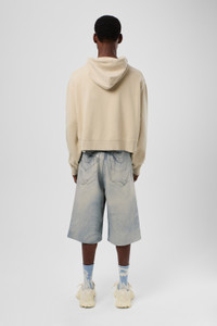 Blue shorts in Candiani Italian denim, made from a superior quality, durable, soft feeling cotton blend that does not require the use of harmful chemicals. Features Material 76% Organic Cotton, 24% Recycled Cotton Color Blue Features - Belt loops Size and Fit Relaxed unisex fit. For a more low-rise look, size up. Male model is 189cm and wearing size 30 Female model is 179cm and wearing size 28 Female Model Measurment Bust: 80 cm Waist: 60 cm Hips: 88 cm Male Model Measurment Bust: 88 cm Waist: 69 cm Hips: 90 cm
