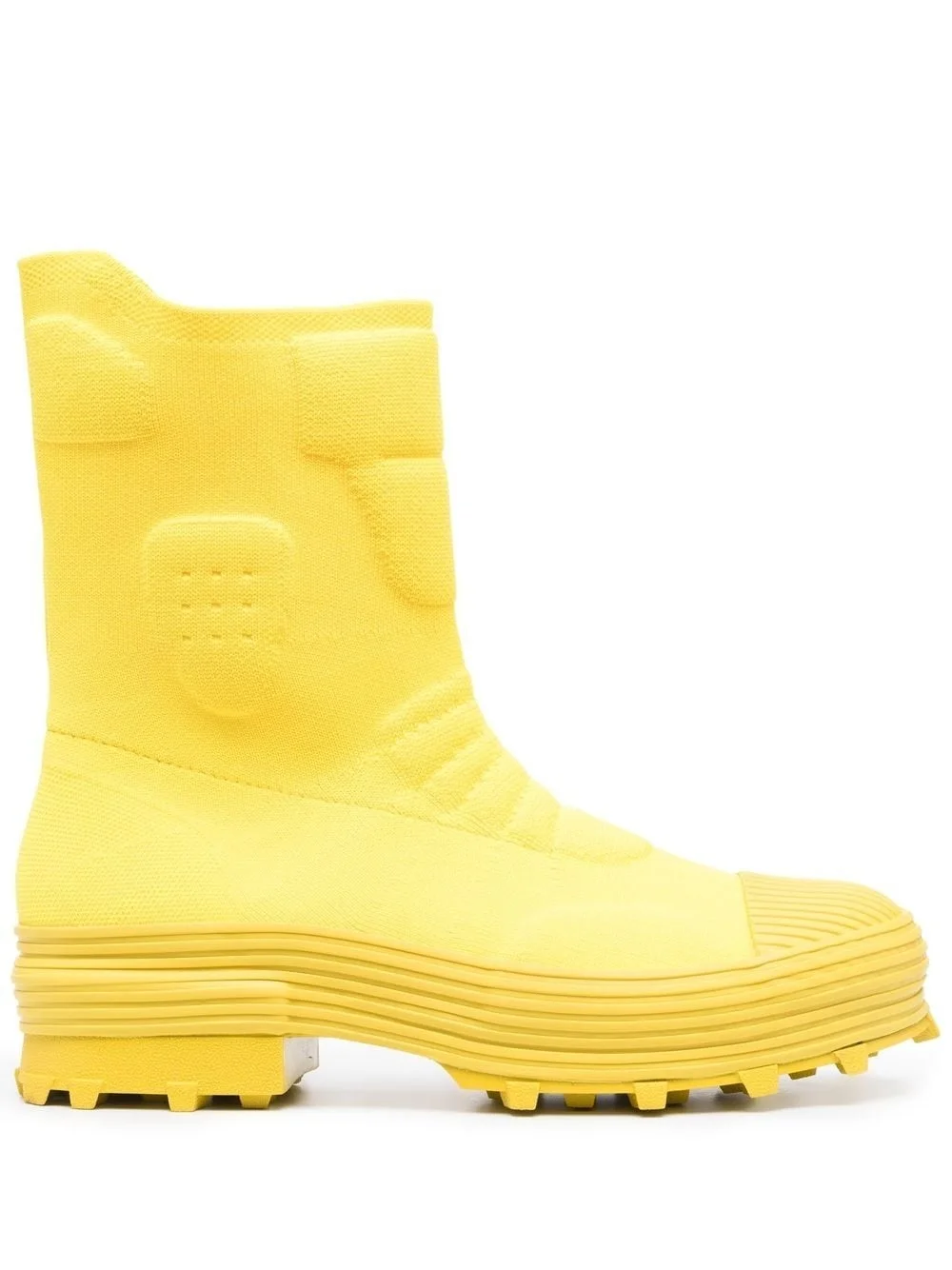 Traktori ankle boots bright yellow recycled polyester blend contrasting toecap round toe slip-on style ankle-length flat rubber sole Imported Composition Outer: Sorona 90%, Rubber 5% Lining: Recycled Polyester 50%, Fabric 50% Sole: Rubber 100% SIZE & FIT Measurement CIRCUMFERENCE 12.59 in(32 cm) HEEL 2.16 in(5.5 cm) HEIGHT 8.46 in(21.5 cm) Sole height 1.57 in(4 cm) Washing instructions Hand Wash