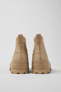 Beige recycled textile and rubber ankle boots with rubber outsoles and OrthoLite® cushioned footbeds. Features Upper Rubber / Textile Color Beige Outsole/Features 100% Rubber Insole OrthoLite® for cushioning Lining 42% textile (53% recycled polyester - 33% recycled nylon - 14% spandex) 35% recycled polyester 23% textile