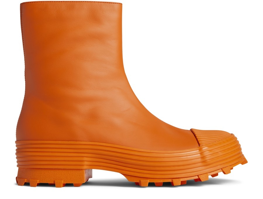 DESCRIPTION - Boots - Thick, notched sole - Logo on the tongue DETAILS AND CARE MATERIAL: Upper : 90% Leather / 10% synthetic / Lining : 51% Recycled polyesterr / 22% Recycled cotton / 12% Viscose 15% Polyethylene terephtalate/ InSole : 100% Rubber / Sole : 100% Leather HEEL HEIGHT: 5 cm / 2 " COLOR: orange COUNTRY OF MANUFACTURE: Vietnam PRODUCT CODE: CLL59K7NORAE2A1A00