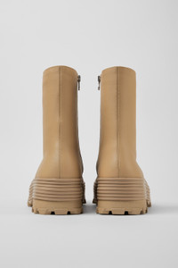 Beige vulcanized leather zip boots with toothed rubber outsoles and OrthoLite® cushioned footbeds. Features Upper Calfskin / Rubber Color Beige Outsole/Features 100% Rubber Side zip Insole OrthoLite® for cushioning Lining 64% textile (45% recycled polyester - 35% recycled cotton - 20% viscose) 19% calfskin 17% recycled polyester