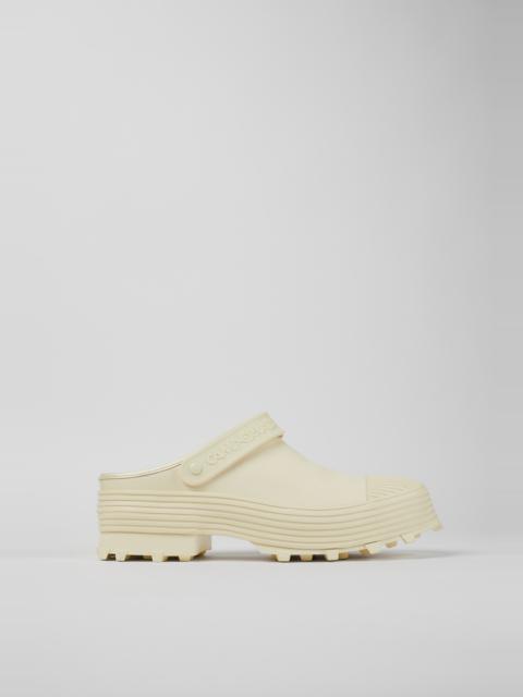 Green vulcanized leather clogs with slingback straps and toothed rubber outsoles. Features Upper Calfskin / PU / Rubber Color Green Outsole/Features 100% Rubber Insole - OrthoLite® Recycled™ Footbed Lining 63% Textile (45% Recycled Polyester, 35% Recycled Cotton, 20% Viscose), 28% Calfskin, 9% Recycled Polyester
