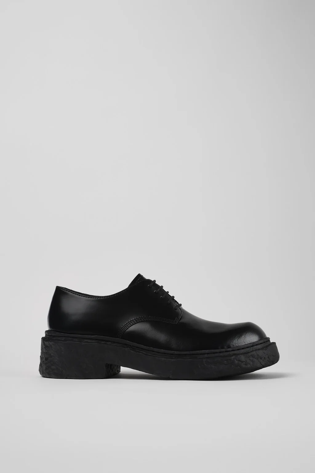 Black leather bluchers with OrthoLite® Recycled™ footbeds and PU outsoles. Features Upper 100% Leather (LWG gold certified) Color Black Outsole/Features 100% PU Insole - OrthoLite® Recycled™ Footbed Lining 71% Leather, 29% Recycled Polyester