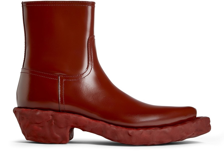 DESCRIPTION - Boots - Pointed toe - Side zipper - Thick outsole DETAILS AND CARE MATERIAL: Upper : 100% Leather / Lining : 83% Leather / 17% Recycled polyesterr / InSole : 100% Rubber / Sole : 51 % Suede / 49 % Leather HEEL HEIGHT: 5.6 cm / 2.2 " COLOR: bordeaux COUNTRY OF MANUFACTURE: Portugal PRODUCT CODE: CLL7J6XBBUR742AA00