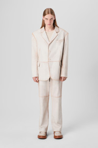 White cracked leather trousers sanded to reveal terracotta base color creating a unique, textured finish. Variations in sanding and any irregularities are not defects but natural characteristics of the material. Features Material Sheep leather Color White Size and Fit - Relaxed fit - Mid-rise - Full length