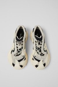 White-green sneakers with TENCEL™ Lyocell uppers featuring distorted print, recycled PET laces with drawstring closure, sugarcane EVA midsoles, OrthoLite® Recycled™ footbeds, and rubber outsoles. Features Upper TENCEL™ Lyocell Color White/Green Outsole/Features Natural Rubber Midsole Sugarcane EVA Insole Recycled OrthoLite® Footbed Lining 76% Recycled Polyester 24% Textile (51% TENCEL™ Lyocell-36% Recycled Polyester-13% PU Thread)