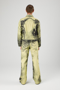 Yellow-Black Distorted Print Denim Jacket
