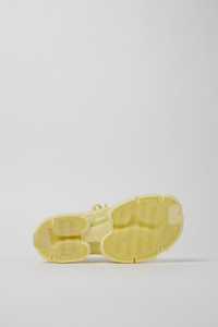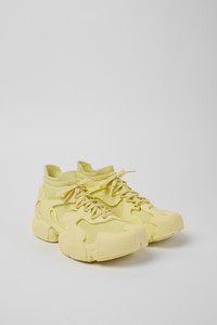 Yellow caged sneakers with water-repellent 3D-knitted recycled PET sock interiors, direct injection TPU exteriors, and recycled PU outsoles. Fully recyclable. Features Upper Textile / Synthetic Color Yellow Outsole/Features PU / TPU Insole PU Removable Footbed Lining 80% textile (75% recycled polyester - 14% Hilo PU - 11 spandex) 20% recycled polyester