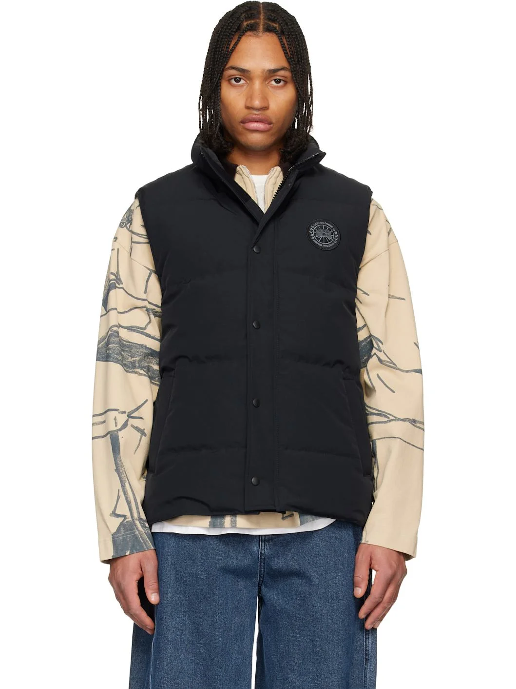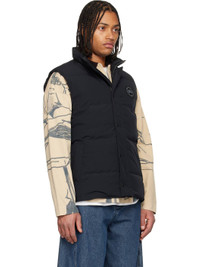 Down-filled and quilted Arctic Tech® canvas vest. · Water-repellent · Stand collar · Two-way zip closure with press-stud placket · Embroidered logo patch at chest · Welt pockets at waist · Droptail hem · Zip pocket at interior · Fully lined Part of the Black Label collection. Supplier color: Black Body: 84% polyester, 16% cotton. Fill: 80% duck down, 20% duck feather. Lining: 100% polyamide. Made in Canada 252014M178021